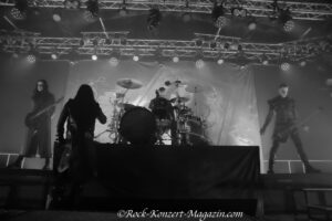 Episch-heroisch startete auch das Set des Hauptacts: dunkle Bühne und langsame Tieftonschläge auf den Drums, dann eine episch-melancholische Melodie, Auftritt der Musiker bei dunkelrotem Licht und Nebel zum Beginn von Von Hass getrieben. Schließlich, in bester 300-Manier, „Das ist Nachtblut!“ von Askeroth. Man beschränkte sich hinsichtlich der Publikumsinteraktion allerdings nicht nur auf’s gemeinsame fröhliche Schimpfwortsingen und die gelegentliche Animation zum Ende heben. Nachtblut zeigten, neben einem hohen Maß an Dynamik auf der Bühne, auch einen Fokus auf umfassende Fan-Nähe. Auch gab es zur Bitte um eine Wall of Death es gleich eine Erklärung, was das genau ist, und bei Stirb langsam Shots für die ersten Reihen, nachdem die Frage, ob die Anwesenden „Bock zu saufen“ hätten, ziemlich motiviert bejaht worden war. Wenn das mal kein Service ist! Das Konzert endete ähnlich, wie es begonnen hatte: Mit jeder Menge Applaus und Jubel, langsam ausklingender Musik, und der ebenso pragmatischen wie korrekten Zusammenfassung “ Das…war…Nachtblut!“